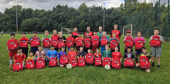 Neue Ausrüstung für unsere Kids: Die Firma Kulinna hat unsere beiden U12-Mannschaften mit neuen Sportrucksäcken ausgestattet. 37 junge Fußballtalente sagen Danke!