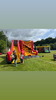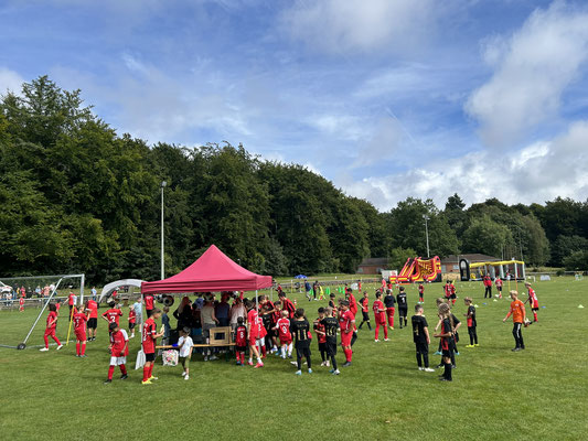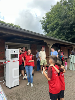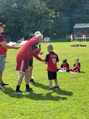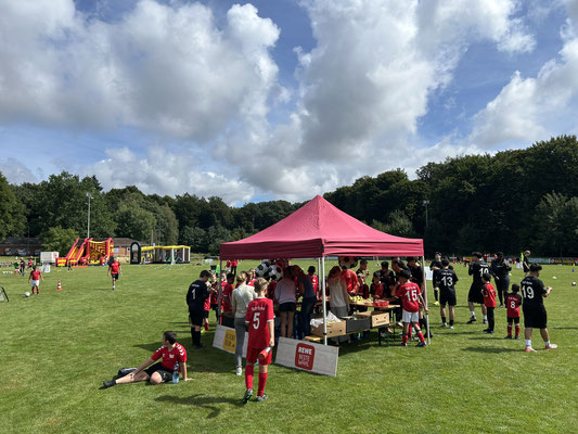 an dem sich auch jährlich der Jugendförderkreis beteiligt, zeigen die Gewinner beim Speedkick der Jugendlichen David und Lukas und bei den Herren Tim und Marcel mit Holger Surm, der die Preise überreichte. Fans der Jugendabteilung zeigen unseren Schal, Tischkicker wurde gespielt uns Us Ilse trat den Ball mit 45 km/h ins Tor.